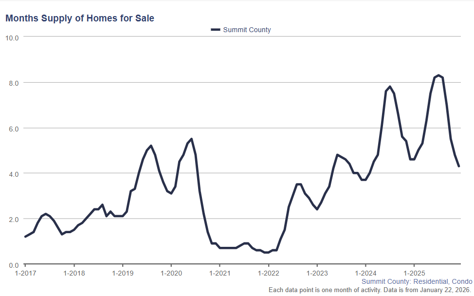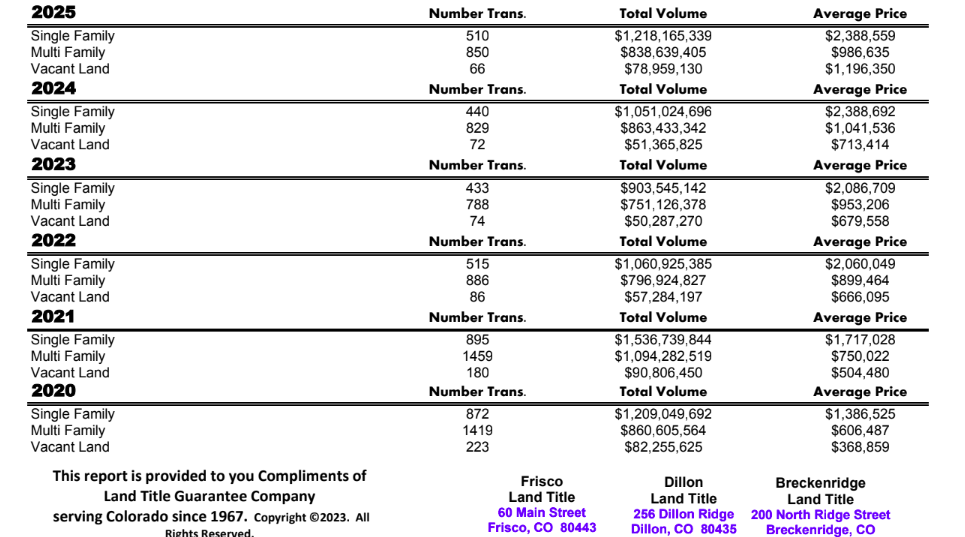 BUT more homes are selling compared to the last few years. The number of homes sold and the total sales volume in 2025 in Summit County was higher than 2023 or 2024.
